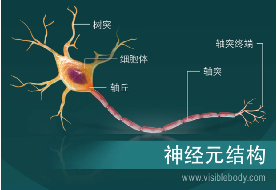 神經(jīng)元的基本結(jié)構(gòu)(圖片來(lái)源:www.visiblebody.com)