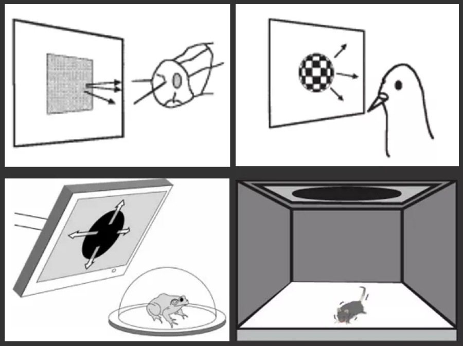 實驗室里研究不同動物對逼近黑影刺激的反應
