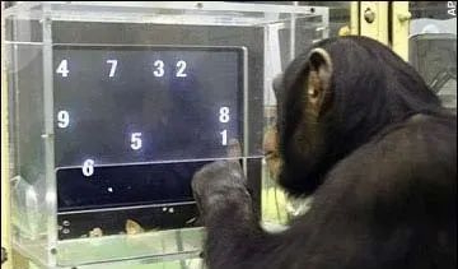 黑猩猩在訓(xùn)練后可以按順序觸摸屏幕數(shù)字