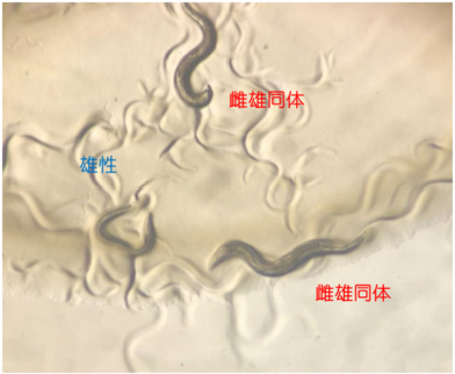 顯微鏡下兩種性別的線蟲(你能分辨出來它們有何不同嗎?)
