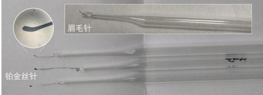 實驗室的小鼠一般可以直接用手抓,線蟲只有區(qū)區(qū)1mm,就像一個短線頭,需要在顯微鏡下才能看清楚,用手抓實在有點強人所難了。當我們需要轉(zhuǎn)移實驗室里的線蟲,給它們挪窩的時候,鉑金絲針或眉毛針是不錯的選擇。