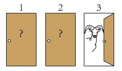 假設你正在參加一檔真人秀電視節目,在你面前有三扇門。其中一扇門后藏有本期超級大獎——高級轎車一部,而剩下兩扇門后則各有一只山羊。現在你隨機選了其中的一扇門(1號門),但還沒來得及打開它。節目主持人清楚地知道每扇門后面都是什么,他此時打開了另一扇門(3號門),3號門里是一只山羊?,F在問你,要不要改變選擇,從1號門換成2號門?