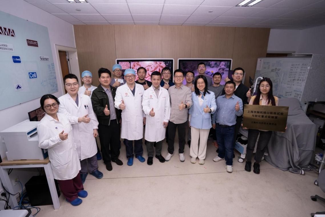 圖1:中國首例無線侵入式腦機接口系統(tǒng)前瞻性臨床試驗術(shù)后項目團隊合影留念