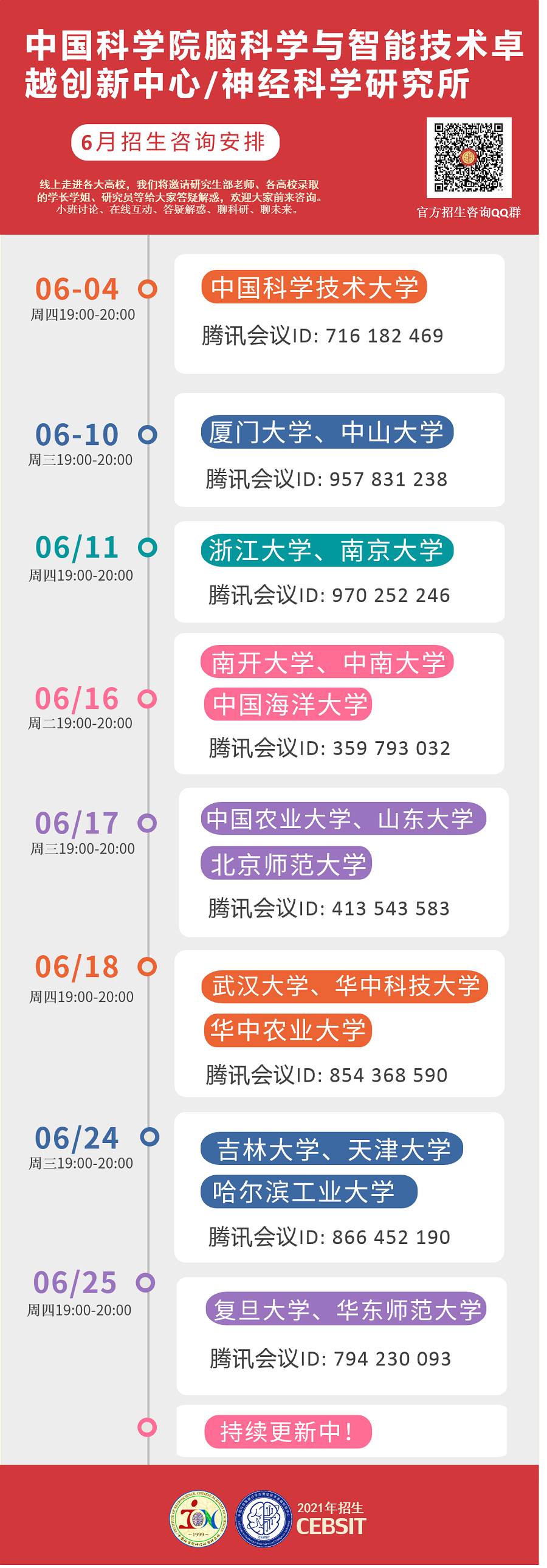 中國科學院腦科學與智能技術卓越創新中心/神經科學研究所六月招生咨詢安排