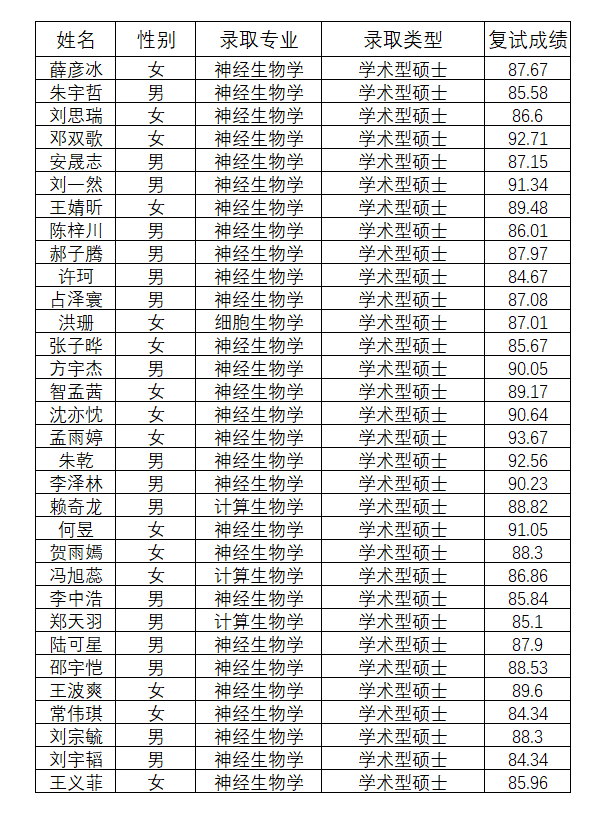 中國科學院腦科學與智能技術卓越創新中心2023年招收推薦免試碩士生擬錄取名單公示