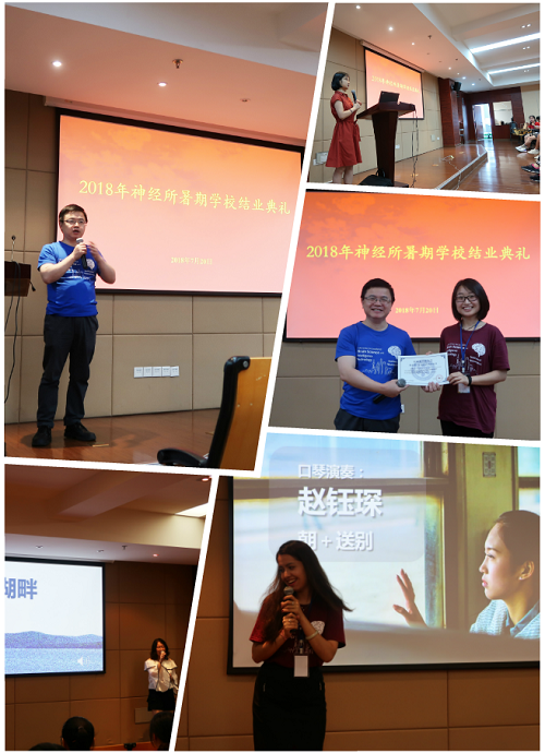 結業典禮上,神經所黨委副書記、紀委書記王佐仁為同學們頒發了結業證書,并祝愿同學們都可以擁有一個美好的未來。學員代表們與大家分享了各自的感想和收獲,并衷心感謝神經所老師們細心組織了此次暑期學校。在隨后的聯歡會上,學員們精心準備了豐富多采的節目,展示各自的才藝,為兩周來大家一起學習與生活的美好時光劃上了美好而難忘的感嘆號!