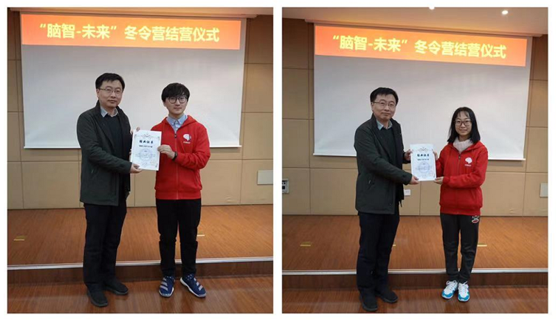 1月15日傍晚,冬令營結營典禮在A405報告廳隆重舉行。結業典禮上,黨委副書記兼紀委書記王茂華為同學們頒發了結業證書。學員代表們分享了短短三天冬令營的感想和收獲,他們表示不僅在講座中獲得了知識,更是在與導師們面對面的交流中,感受到了導師們對于學術研究的熱情與執著,深受鼓舞,并對諸位老師的專業指導和辛勤付出表示由衷地感謝。國科大本科部副部長孫燕新和未來技術學院學生主管張偉男老師也寄厚望于學員們,希望學員們都能學好扎實的基礎,在交叉學科融合中發揮自己的專長,繼續在科研道路上砥礪前行。最后,王茂華副書記向國科大本科部和未來技術學院對本次冬令營的大力支持表示衷心感謝,并與同學們分享了對于知識與能力差異性的理解,勉勵同學們在神經、智能交叉學科的道路上不斷探索、勇于擔當,將學到的知識轉換為可以為社會為人類做貢獻的能力,無愧時代,不負韶華。