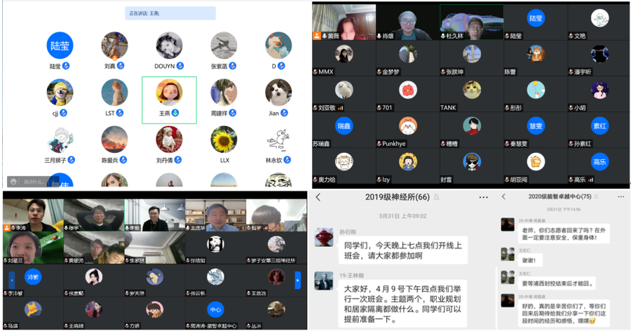 疫情開始后中心迅速啟動了研究生年級班主任機制,由5位中心領導分別擔任5個年級的班主任;同時,每個年級再配2名青年研究員擔任青年導師,共同構建起矩陣化的研究生輔導架構。一場場疫情防控主題班會正在線上進行著。班主任與青年導師們的關愛無縫觸達,疏導心理,解決學生實際困難,用真情真意守護學生的身心健康。戰疫的日子里有的同學心理上難免會有些波動,在主題班會上,通過公開信息、學習交流、線上思想引導等,將個人發展融入國家和社會發展大勢,上好疫情防控這堂思政大課。