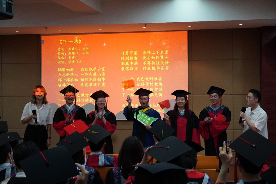 接著是今年畢業典禮的特別環節——“畢業獻歌”,同學們演唱自己創作的歌曲《下一站》,將自己對中心的情誼、對師長的感恩、對科研生活的留念、對未來的無限期許,都融入了歌聲里。
