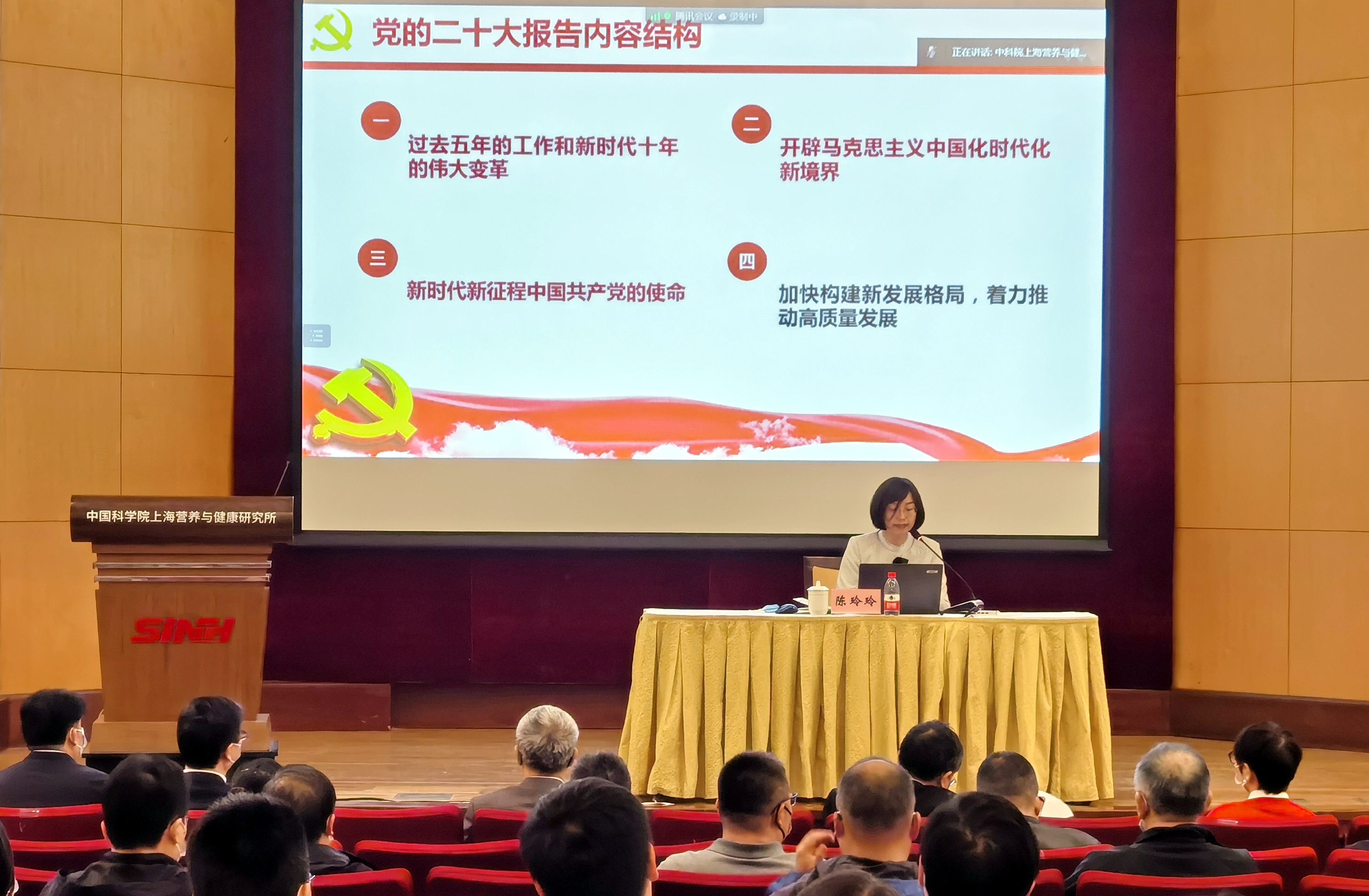 2022年10月31日,腦智卓越中心黨委、分子細胞卓越中心黨委、營養與健康所黨委、分子植物卓越中心黨委和上海巴斯德所黨委聯合舉辦了黨的二十大精神傳達學習會,邀請黨的二十大代表陳玲玲研究員作了專題傳達報告,中心領導班子成員、兩委委員、黨支部書記、黨支部委員、群團組織負責人、入黨積極分子等參加了學習會。