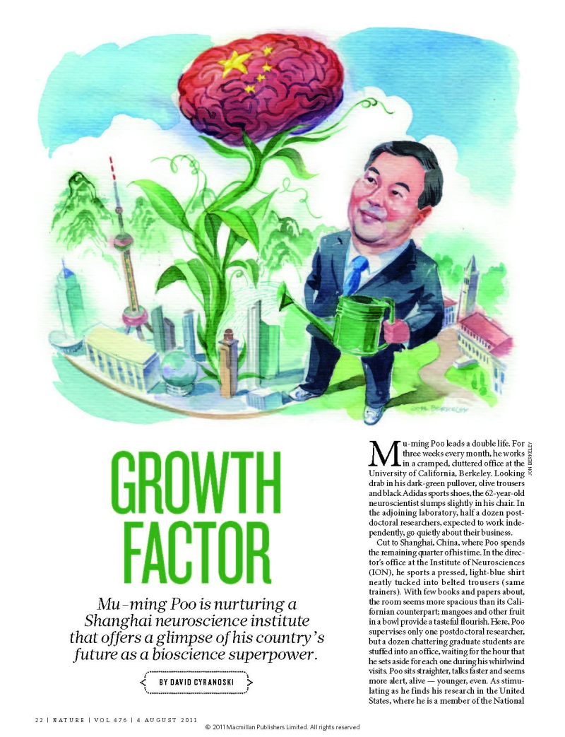 2011年NATURE發(fā)文綜述蒲慕明對中國神經(jīng)科學(xué)領(lǐng)域的貢獻(xiàn)。