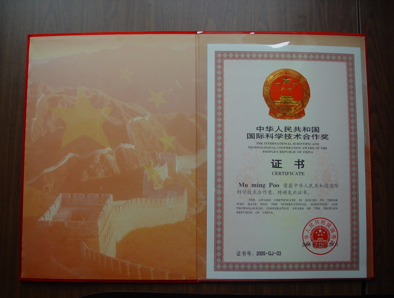 2005年蒲慕明榮獲中華人民共和國國際科學(xué)技術(shù)合作獎