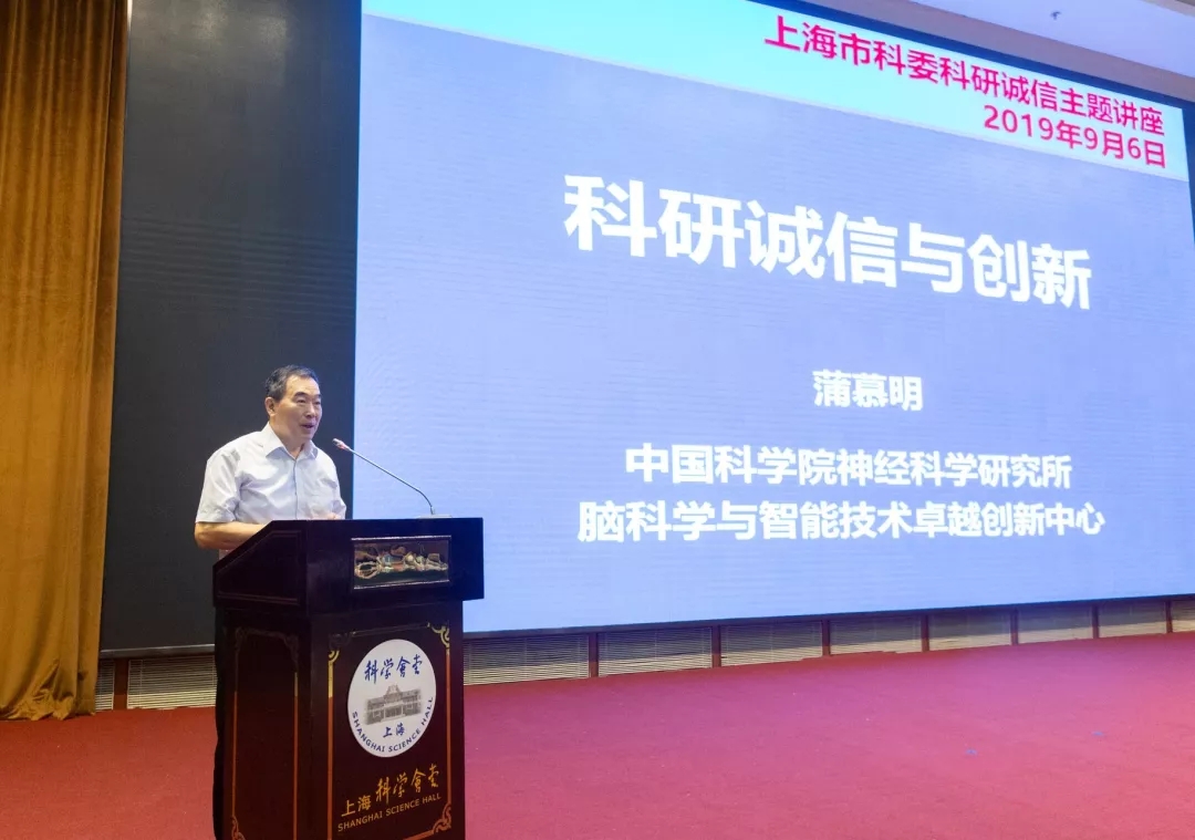 9月6日下午,上海市科技黨委、市科委、市科協聯合舉辦2019“科研誠信與創(chuàng)新”主題培訓。中國科學院腦科學與智能技術卓越創(chuàng)新中心主任、神經科學研究所所長蒲慕明院士應邀作《科研誠信與創(chuàng)新》主題報告。在滬高校、科研院所、醫(yī)療衛(wèi)生機構、學會協會等單位負責同志,上海市浦江人才、青年科技啟明星、青年科技英才揚帆計劃入選人員代表,科研經費“包干制”改革試點的項目負責人等500余人參加培訓活動。上海市科學技術協會主席、中華醫(yī)學會副會長陳賽娟院士,上海交通大學黨委常委、常務副校長丁奎嶺院士,復旦大學黨委常委、校學術委員會主任趙東元院士,國家科技部科技監(jiān)督與誠信建設司副司長馮楚建出席活動。上海市科委主任張全、上海市科技工作黨委副書記陳龍,上海市教委巡視員蔣紅,上海市科協副巡視員黃興華出席并講話。本次活動由上海市科委副主任謝文瀾主持。